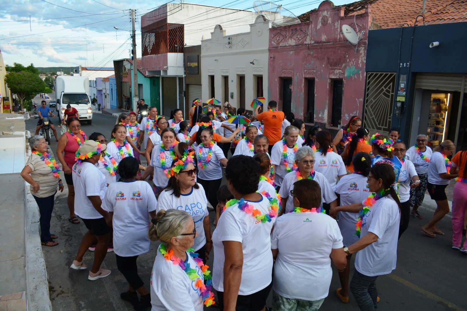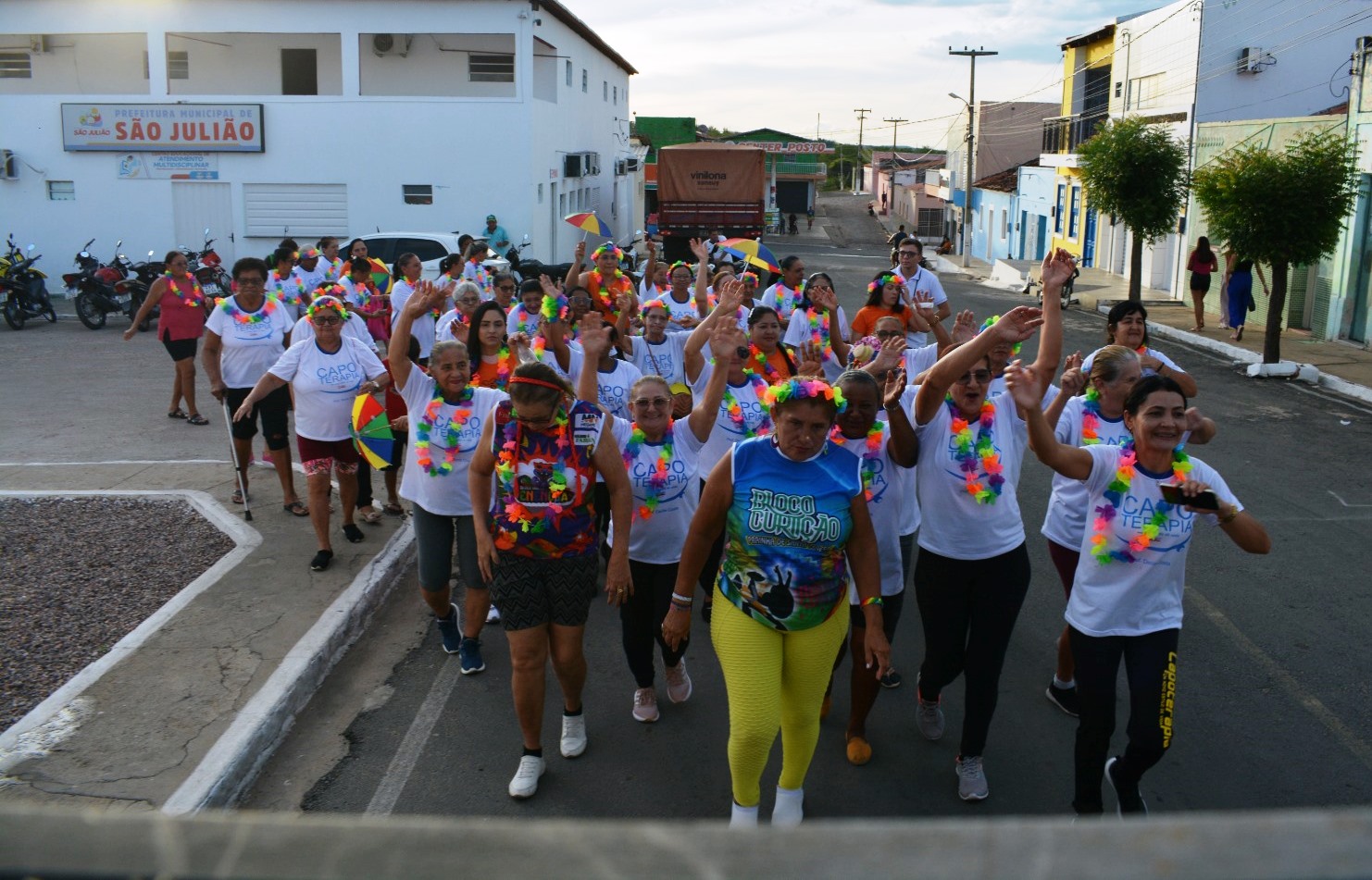 A Prefeitura Municipal de São Julião realizou, nesta quarta-feira, 11 de fevereiro, o Carnaval da Capoterapia, ação promovida pela Secretaria Municipal de Cultura dentro da programação carnavalesca do município. O evento ocorreu na Orla Municipal e reuniu mulheres, idosas e integrantes da comunidade em uma atividade voltada ao lazer e à promoção da saúde.