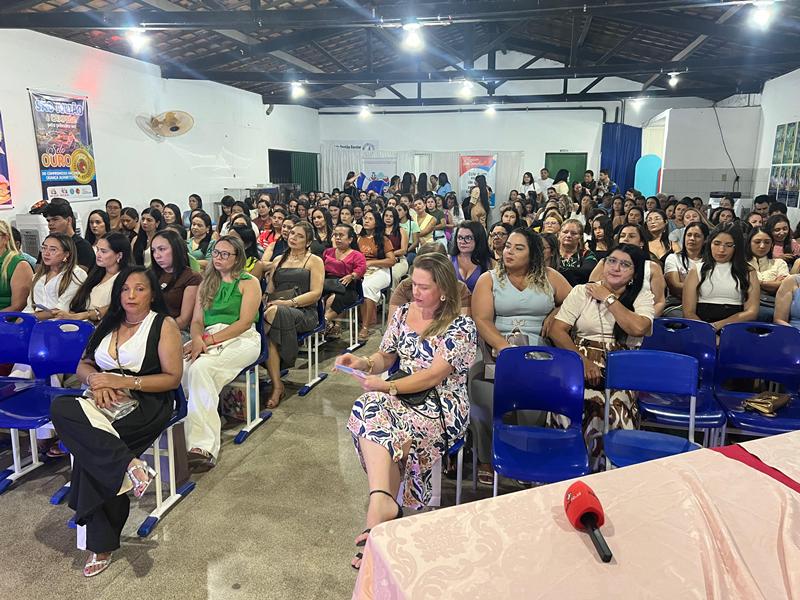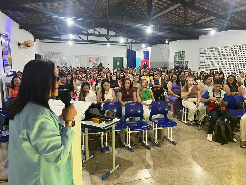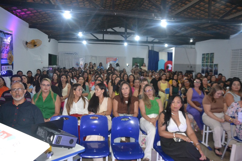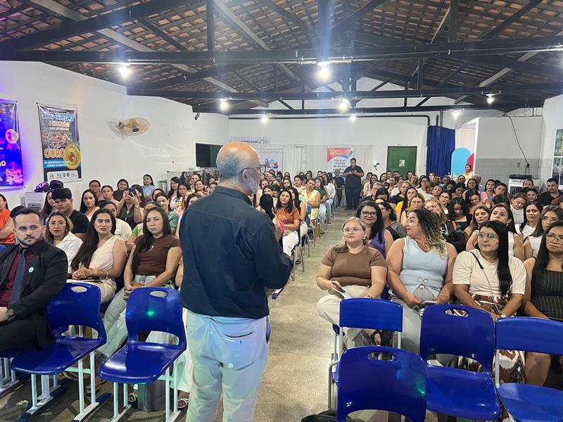 A secretária municipal de Educação, Lucinete Pereira, apresentou a proposta pedagógica da rede, enfatizando os objetivos da Jornada Pedagógica e o fortalecimento de uma educação inclusiva, humanizada e de qualidade.