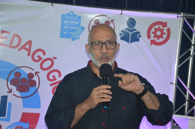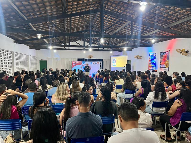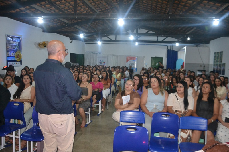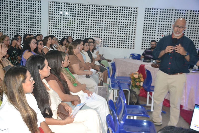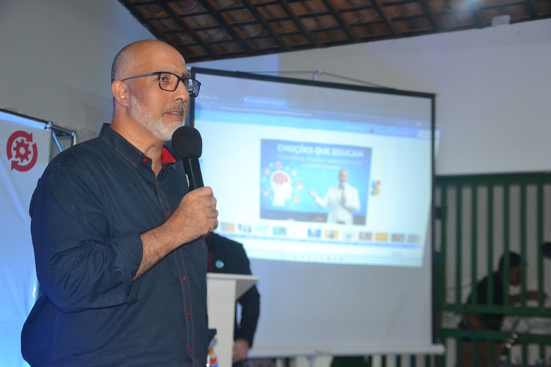 Em sua fala, o palestrante destacou a importância do cuidado com a saúde mental no ambiente educacional, ressaltando que educar vai além do ensino de conteúdos, envolvendo também acolhimento, empatia e fortalecimento de vínculos.